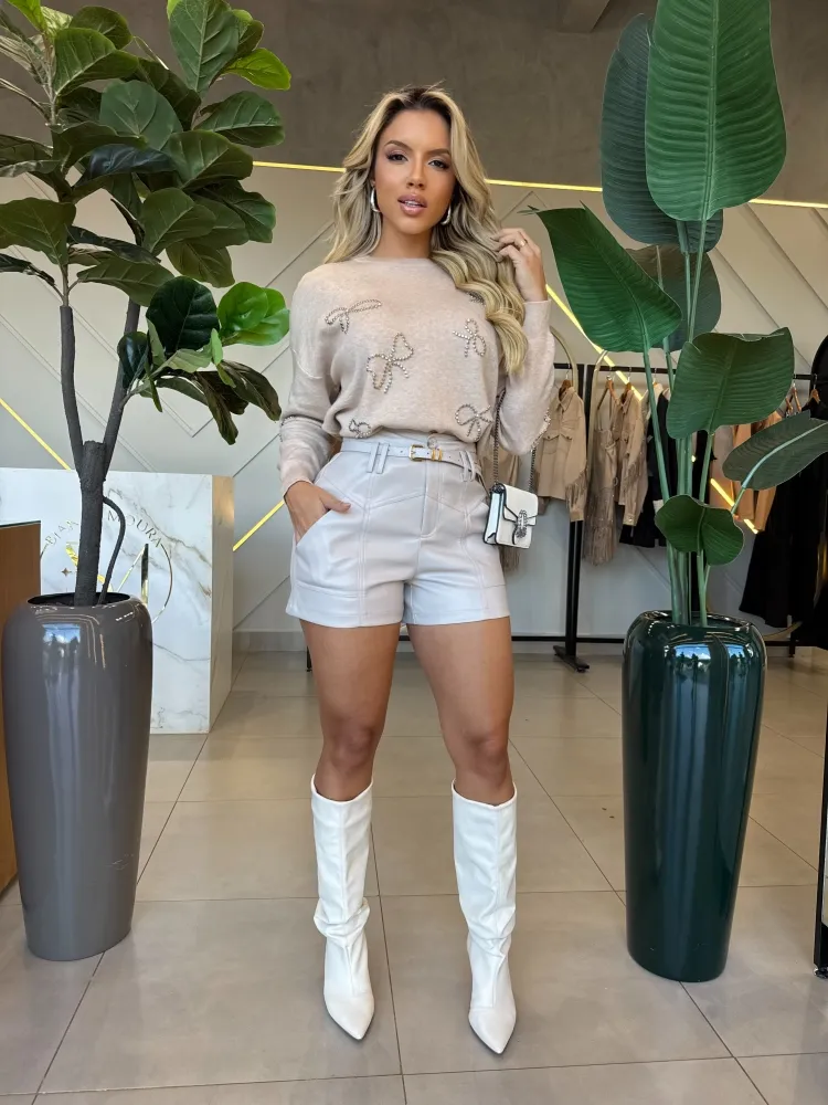 SHORT ADRIANA COURO PU GELO ACOMPANHA CINTO