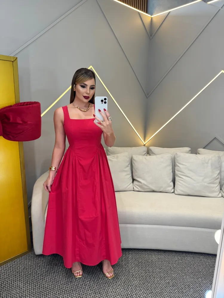 VESTIDO LONGUETE LAÇO COSTAS VERMELHO
